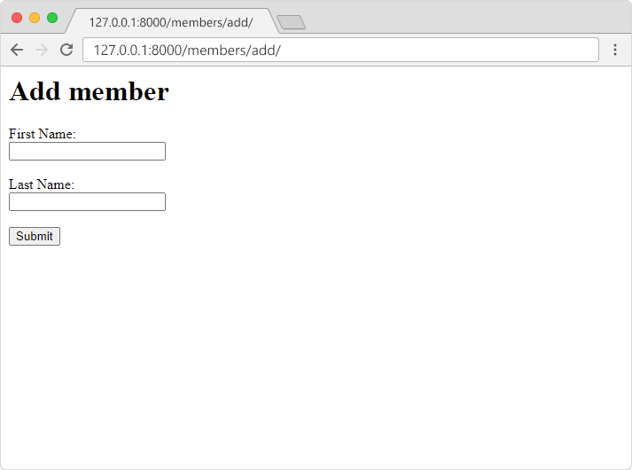 Tiếp theo, thêm một chế độ xem trong tệp members/ views.py, đặt tên cho chế độ xem mới là add: