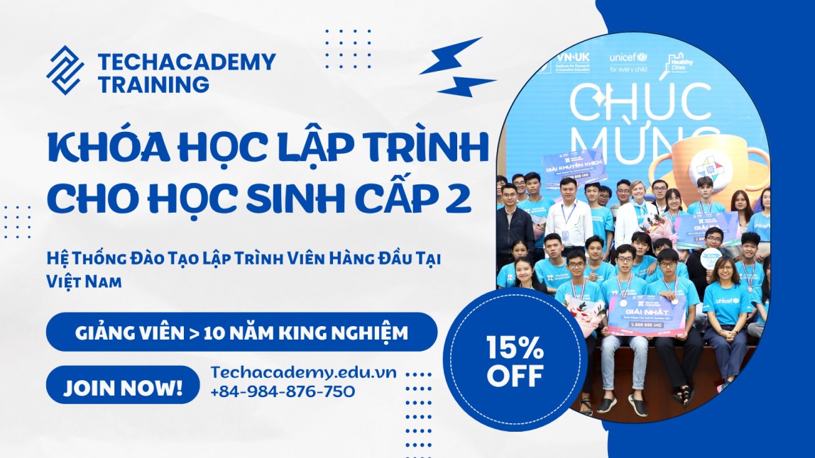 Việc học lập trình sớm ngay từ cấp 2 giúp học sinh khám phá và phát triển tư duy lập trình từ độ tuổi trẻ. Khóa học lập trình cho cho học sinh cấp 2 sẽ cung cấp cho học sinh những kiến thức cơ bản về lập trình và khám phá thế giới lập trình viên. Để hiểu rõ hơn về vấn đề này, ba mẹ hãy cùng Techacademy tìm hiểu nội dung dưới đây ngay nhé !